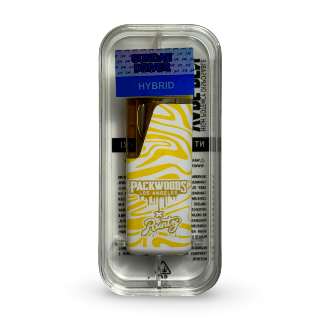Packwood x Runtz 2g Disposable, a top-tier choice for vape enthusiasts looking for quality and convenience. This 2g disposable vape pen features Packspod live resin, renowned for its purity and potency, ensuring a rich and satisfying vaping experience. The Packwood x Runtz collaboration brings together the best in cannabis craftsmanship, resulting in a product that stands out in both performance and design.